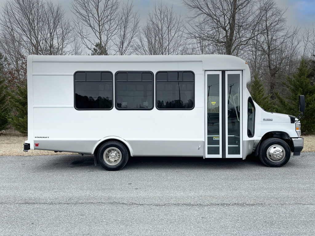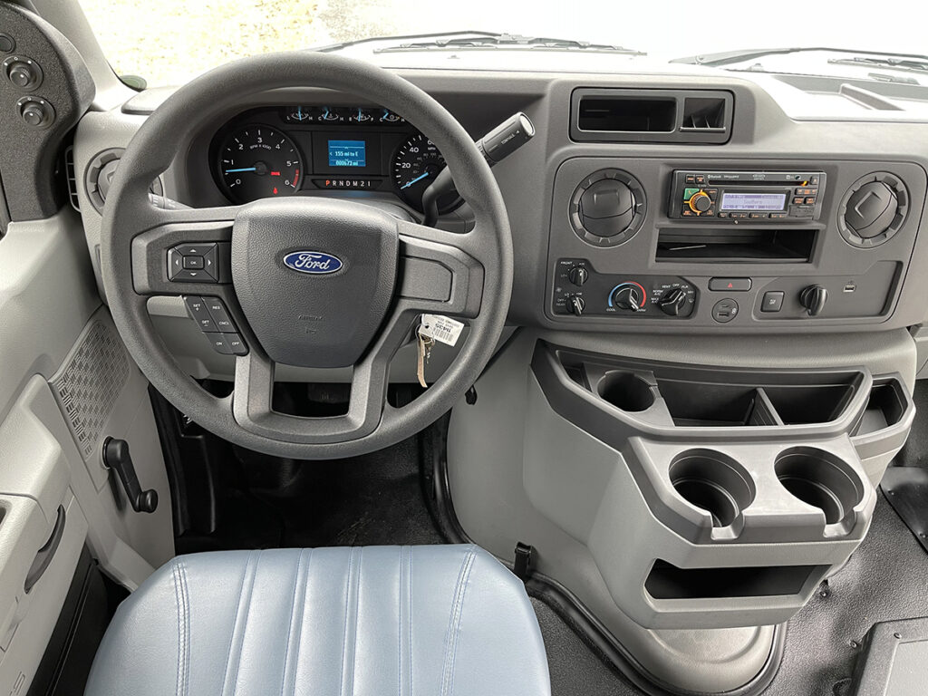 A great non-CDL, easy to drive shuttle bus option. This bus seats 14 passengers plus the driver, and has overhead racks and a rear luggage area. Equipped with electric door with entry assist handrails, this bus is a great solution for any shuttle service, hotel, college, or church.