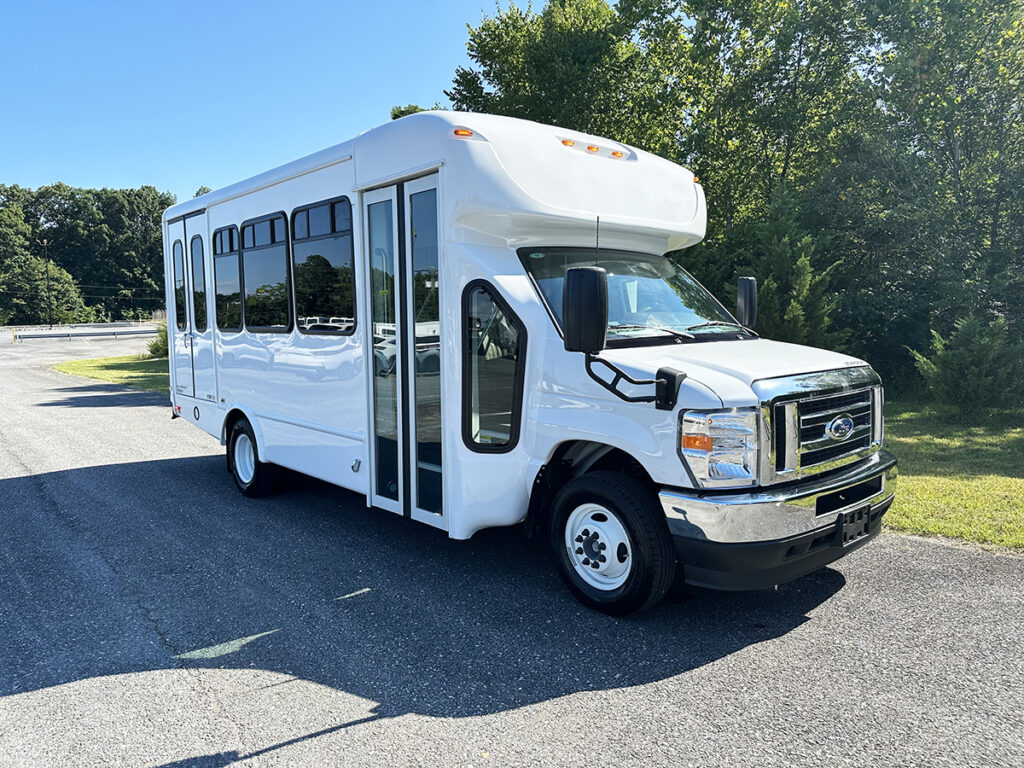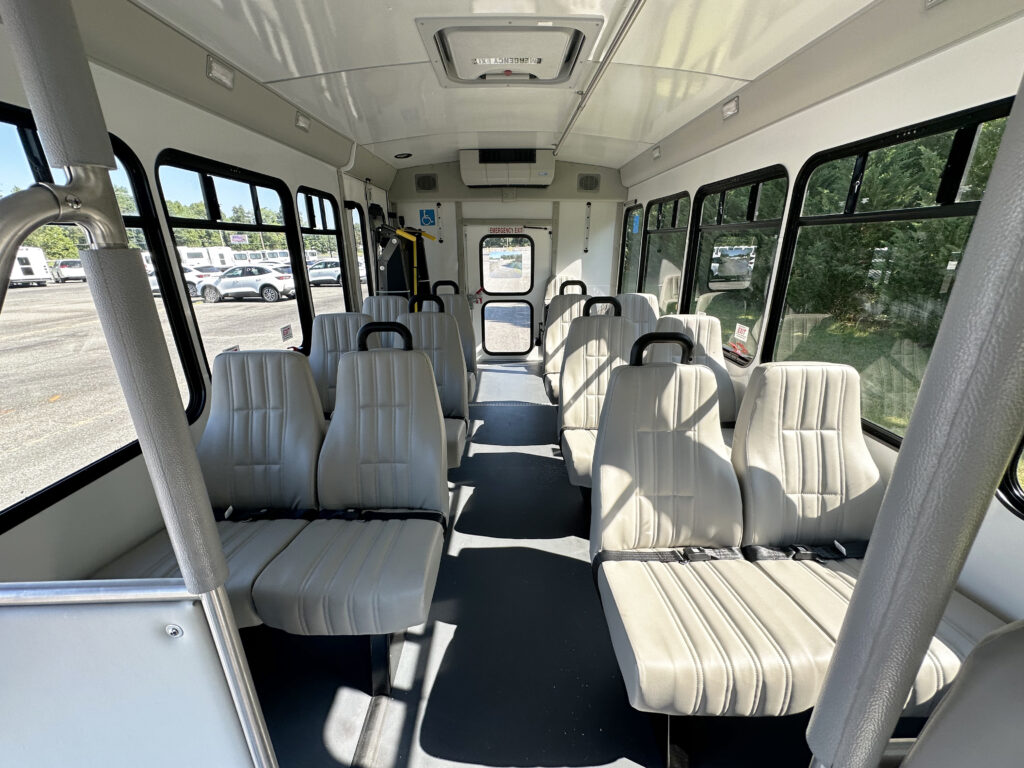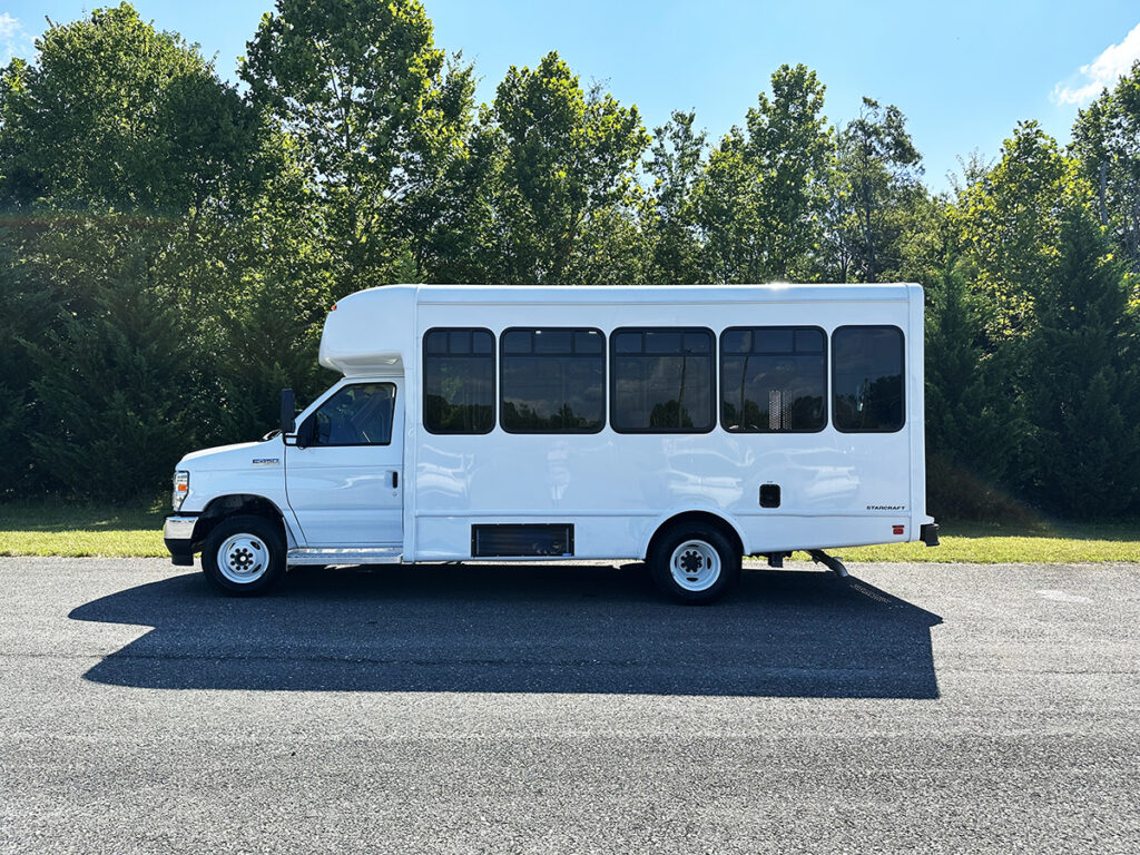 This Starcraft Allstar comfortably seats 12 passengers + driver and has the option of 2 wheelchair positions. Built on a Ford E-350 chassis and a 7.3L gas engine, this bus has all of the power that you need. Some features of this bus include: Braun Century wheelchair lift, 2 Sure-Lok Retractable Tie-Down Kits with Storage Pouches, 1 single flip seat, and much more!